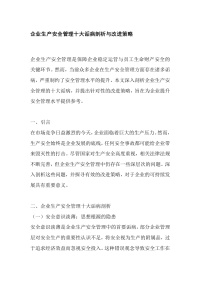 企业生产安全管理十大诟病剖析与改进策略