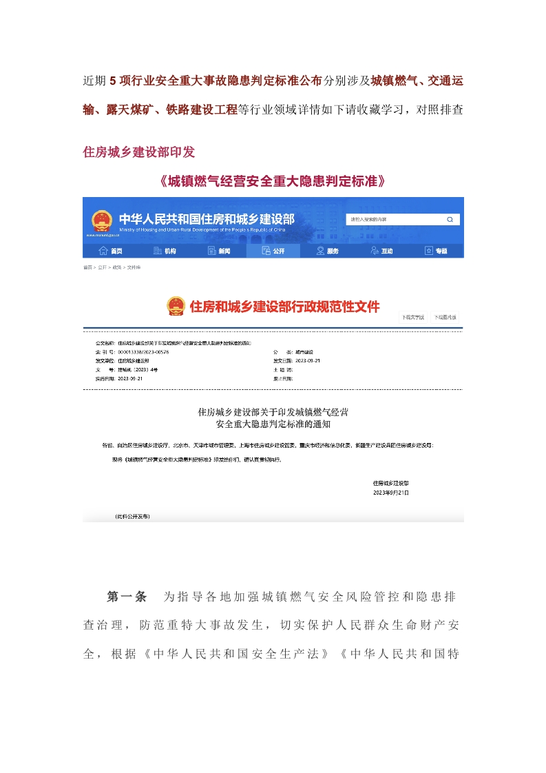 收藏!最全版!新增5项行业安全重大事故隐患判定标准