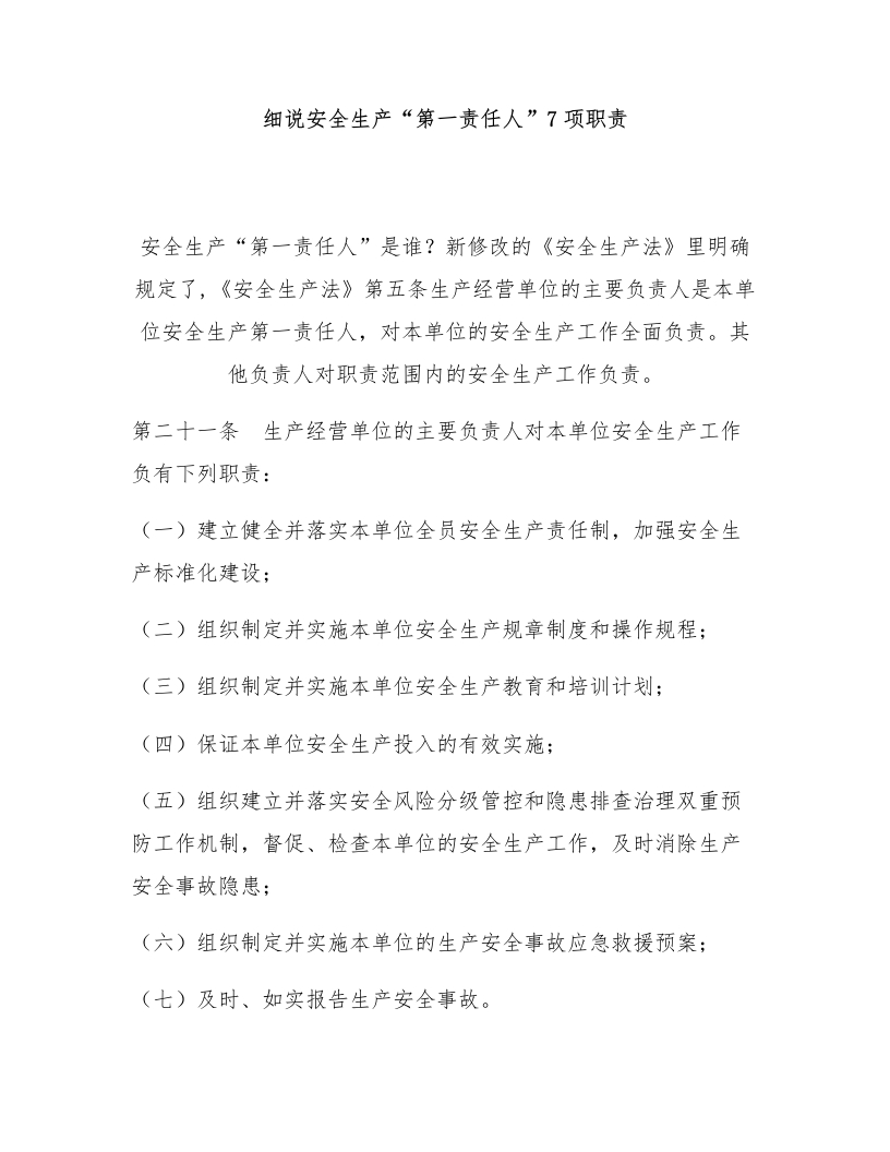 细说安全生产“第一责任人”7项职责作者:周云娟