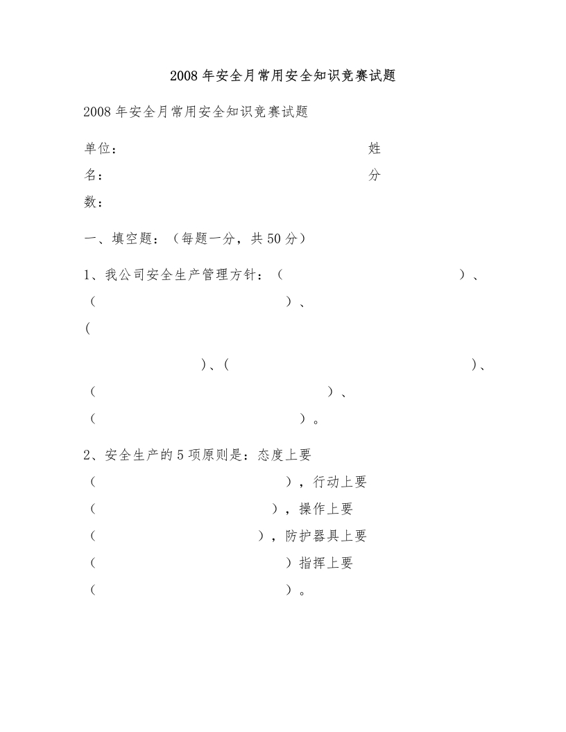 “安全生产月”安全知识竞赛网络答题抽奖活动题库