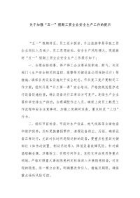 关于加强“五一”假期工贸企业安全生产工作的提示