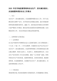 2025 年区市场监督管理局安全生产、防灾减灾救灾、应急救援和消防安全工作要点