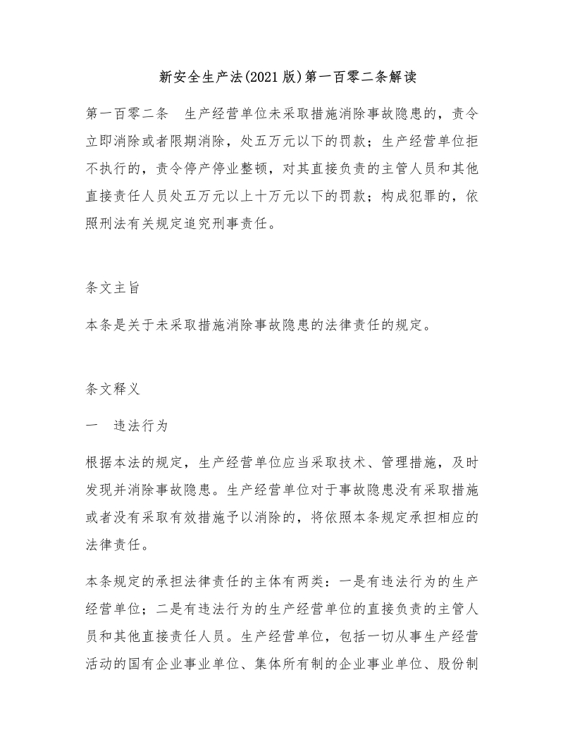 首页安全法规新安全生产法新安全生产法(2021版)第一百零二条解读