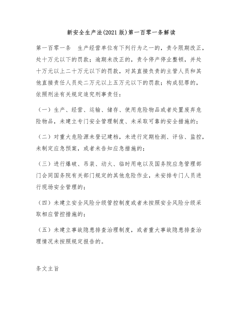 新安全生产法(2021版)第一百零一条解读