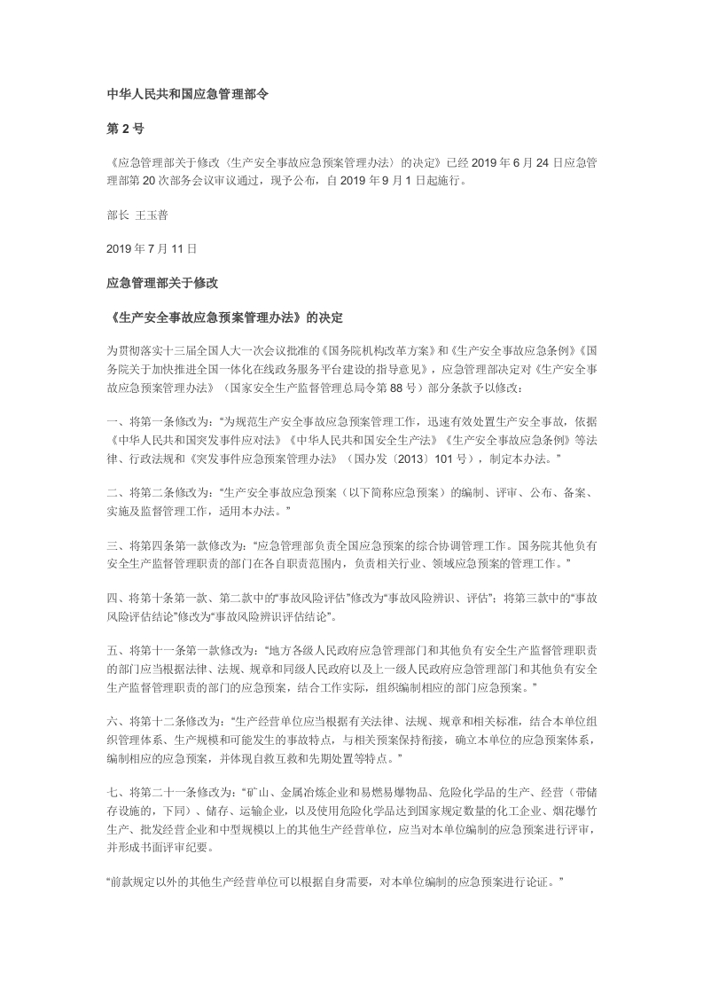 2号令--关于修改《生产安全事故应急预案管理办法》的决定