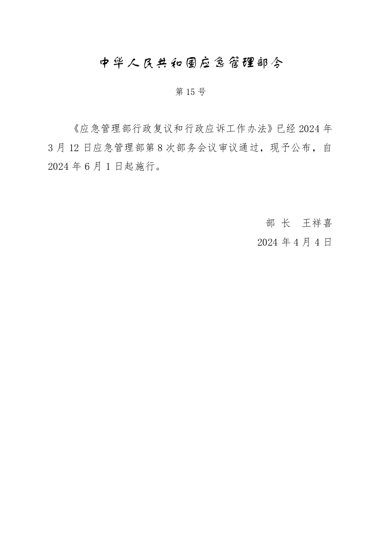 首页安全法规综合法规15号令 应急管理部行政复议和行政应诉工作办法