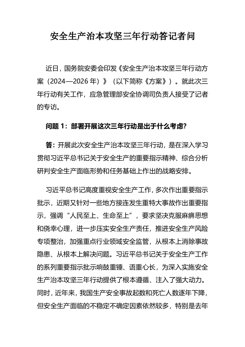 安全生产治本攻坚三年行动答记者问(7个重点问题)
