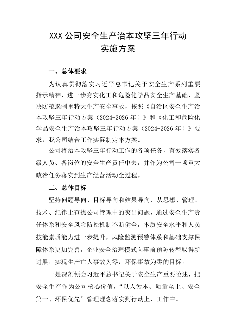 公司安全生产治本攻坚三年行动方案(2024-2026)
