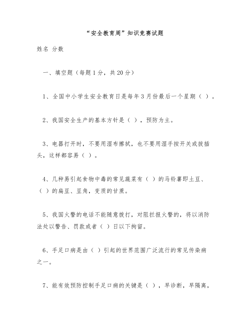 首页安全题库综合试题“安全教育周”知识竞赛试题