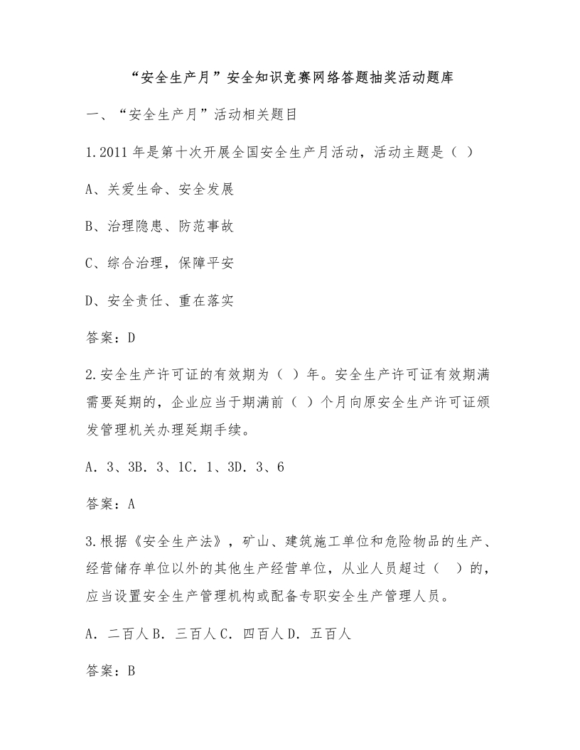 首页安全题库综合试题“安全生产月”安全知识竞赛网络答题抽奖活动题库
