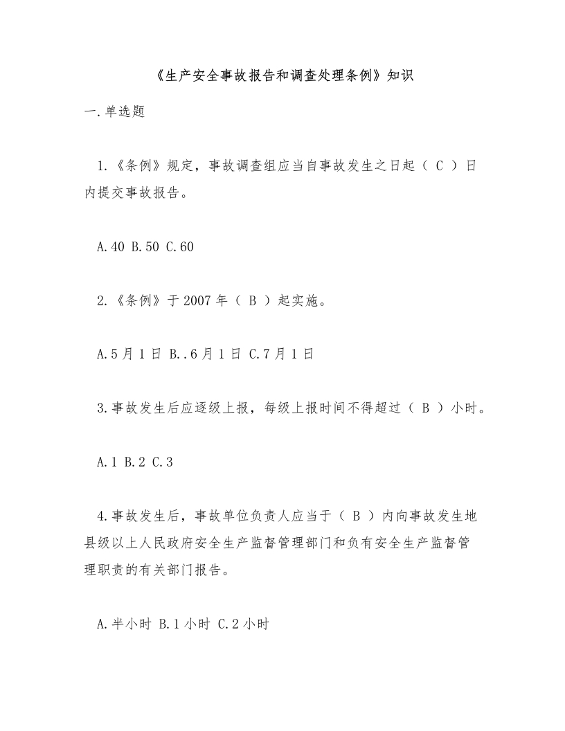 首页安全题库综合试题《生产安全事故报告和调查处理条例》知识