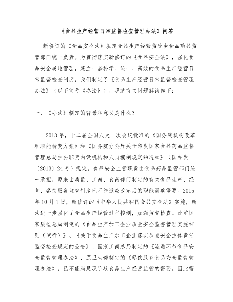 首页安全题库综合试题《食品生产经营日常监督检查管理办法》问答