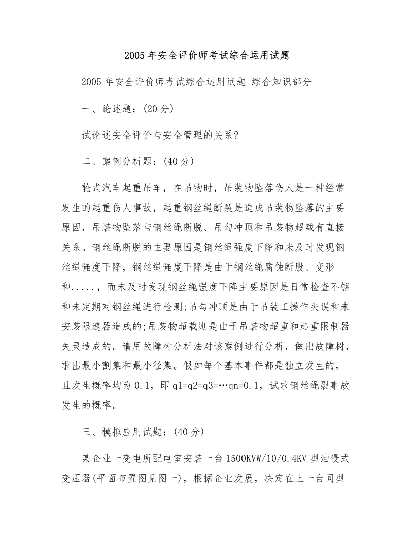 首页安全题库综合试题2005年安全评价师考试综合运用试题