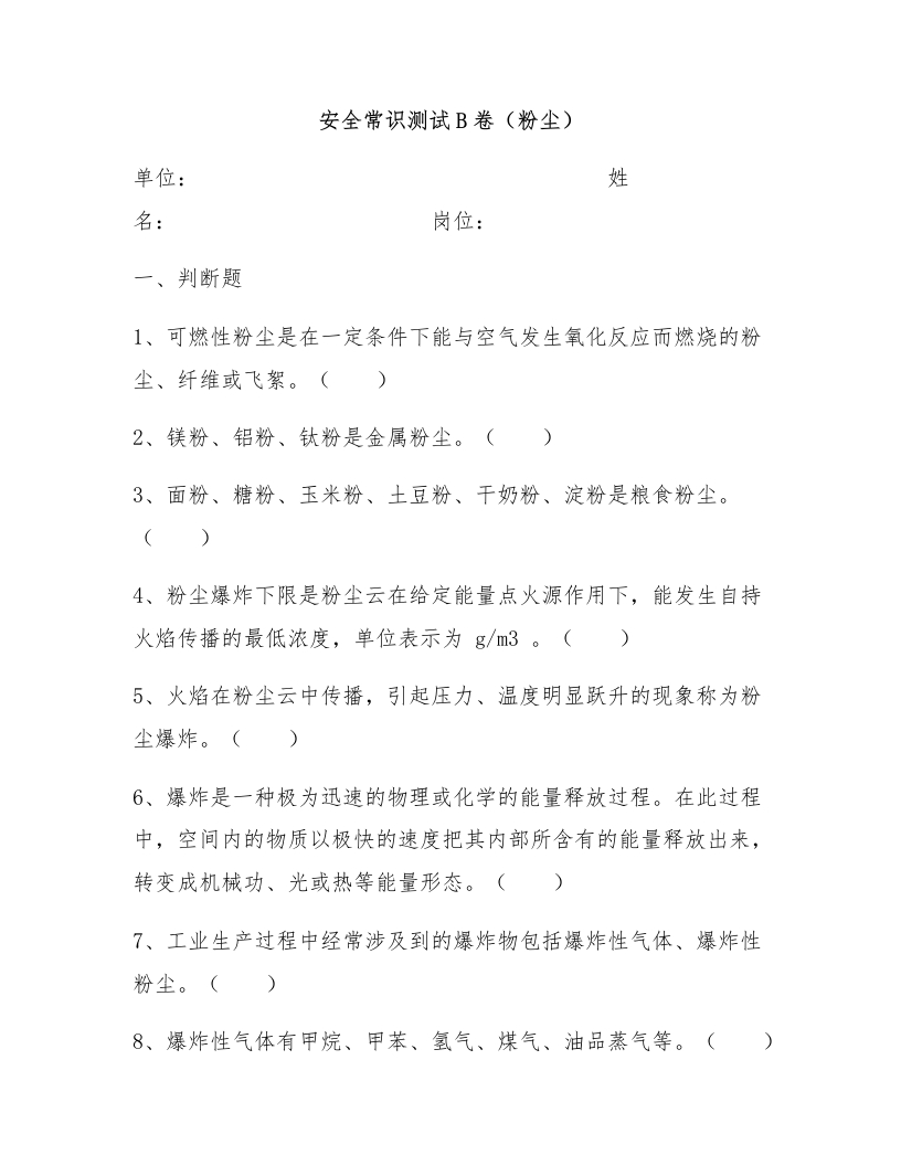 首页安全题库职业卫生试题安全常识测试B卷(粉尘)