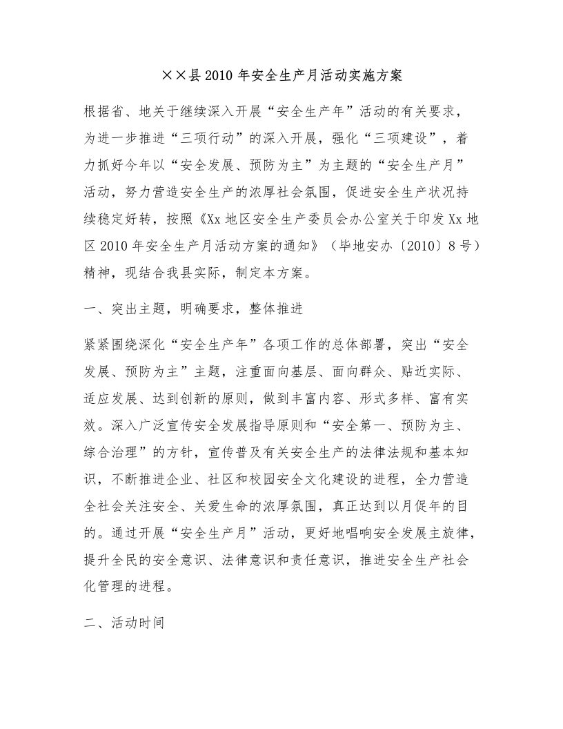 首页专业资料安全生产月××县2010年安全生产月活动实施方案