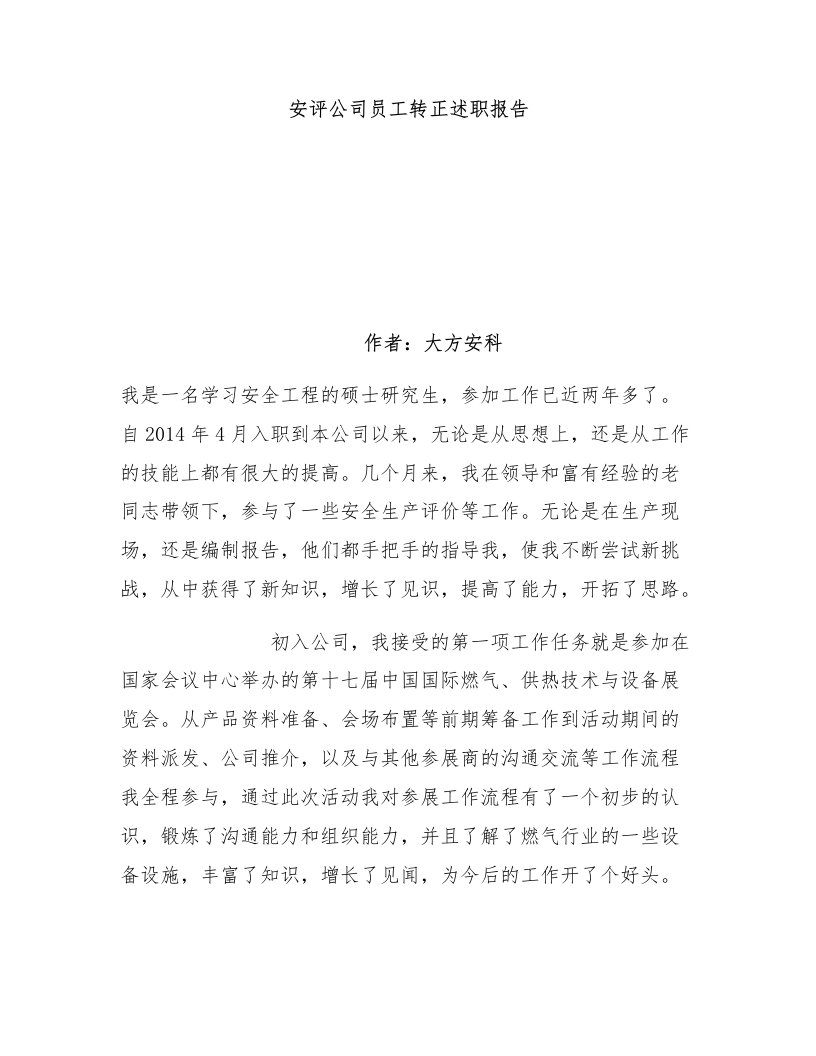 首页安全文档其他安评公司员工转正述职报告作者:大方安科
