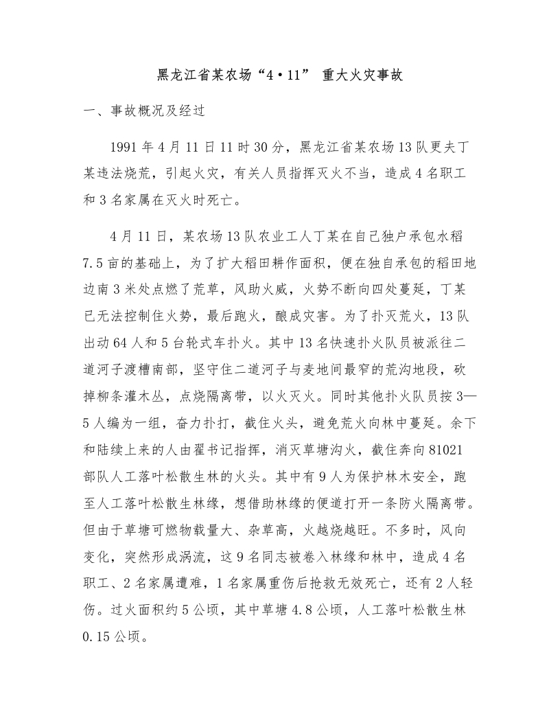 黑龙江省某农场“4·11”重大火灾事故