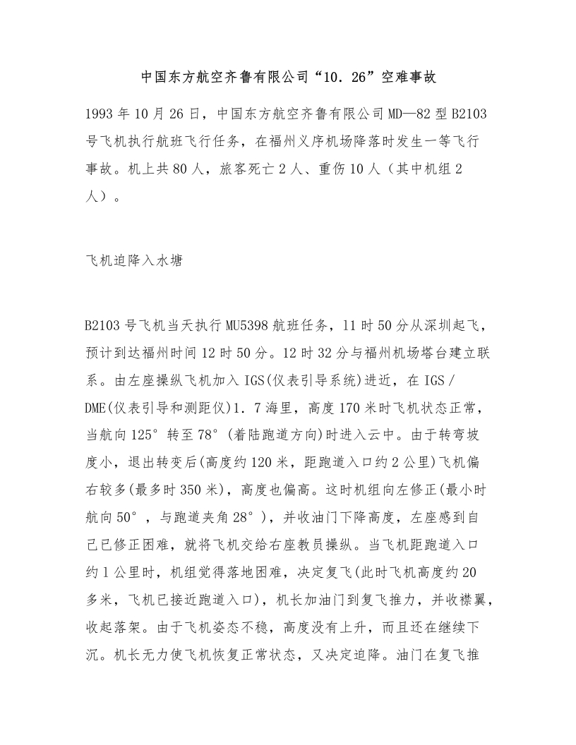 中国东方航空齐鲁有限公司“10.26”空难事故