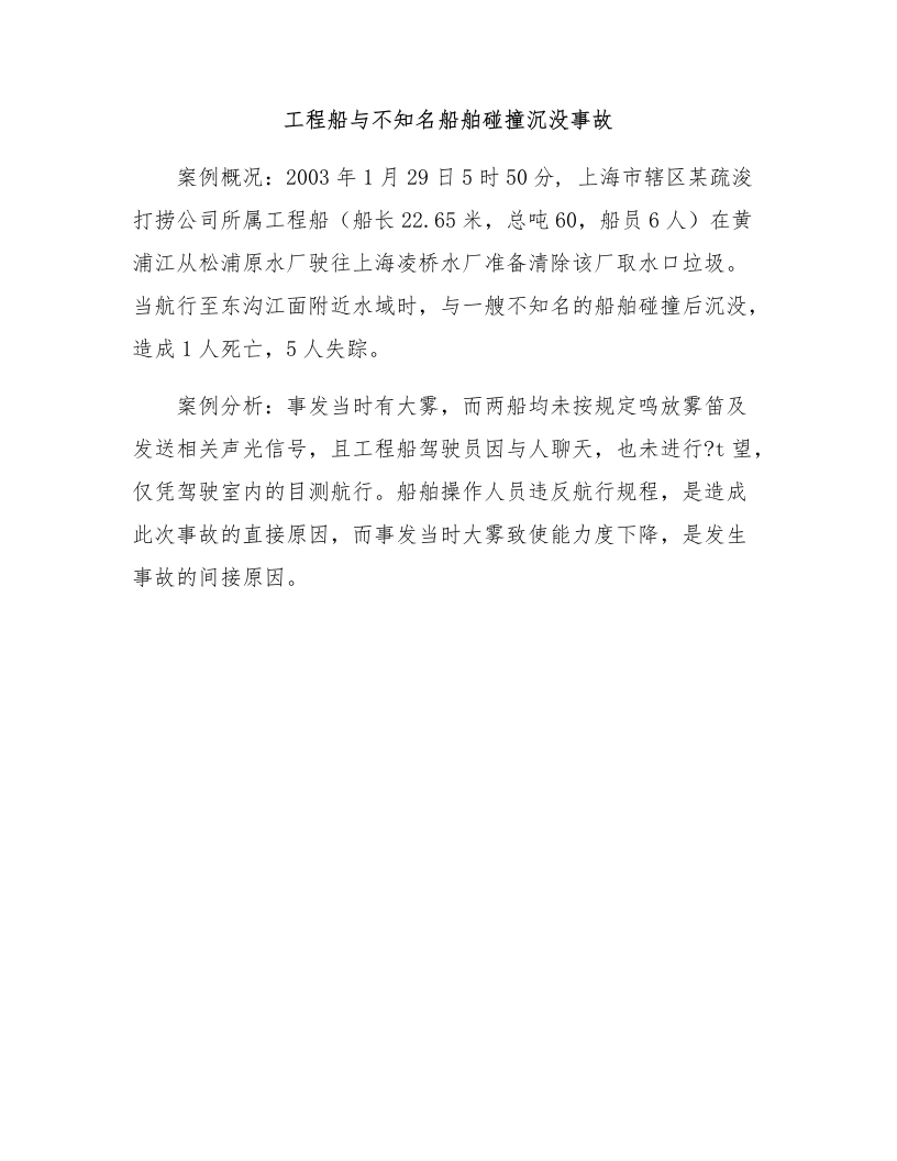 工程船与不知名船舶碰撞沉没事故