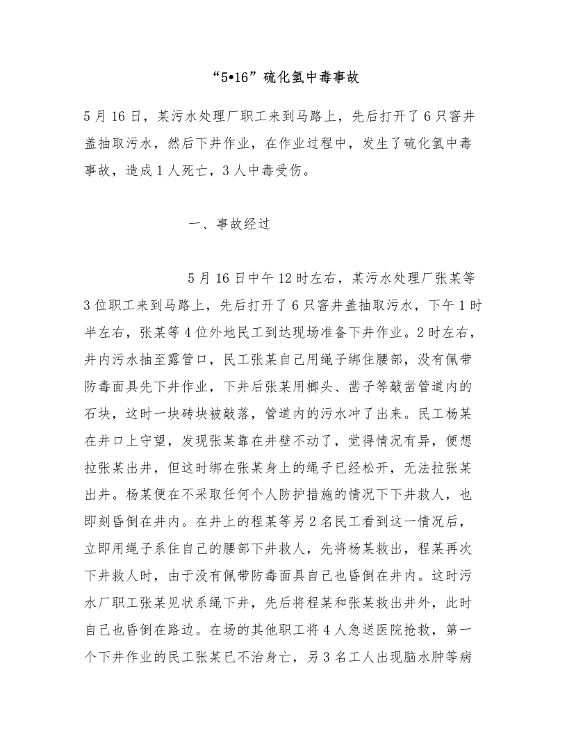 首页事故案例中毒事故“5•16”硫化氢中毒事故