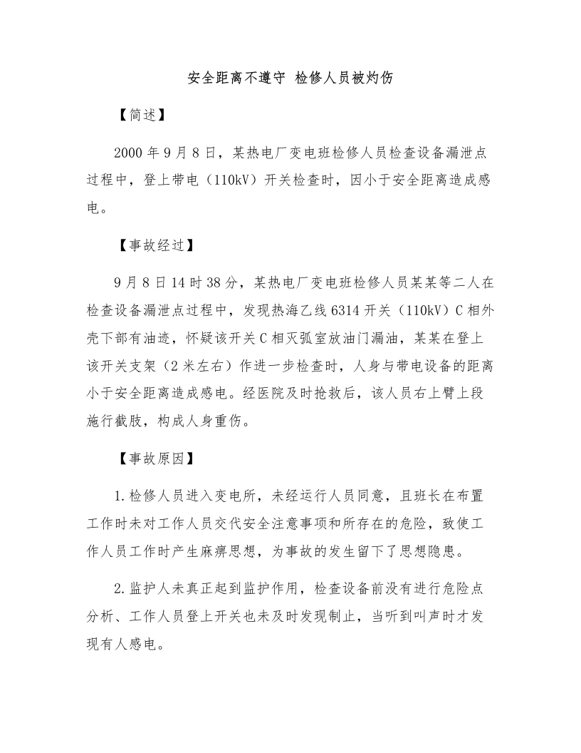 首页事故案例电气事故安全距离不遵守检修人员被灼伤