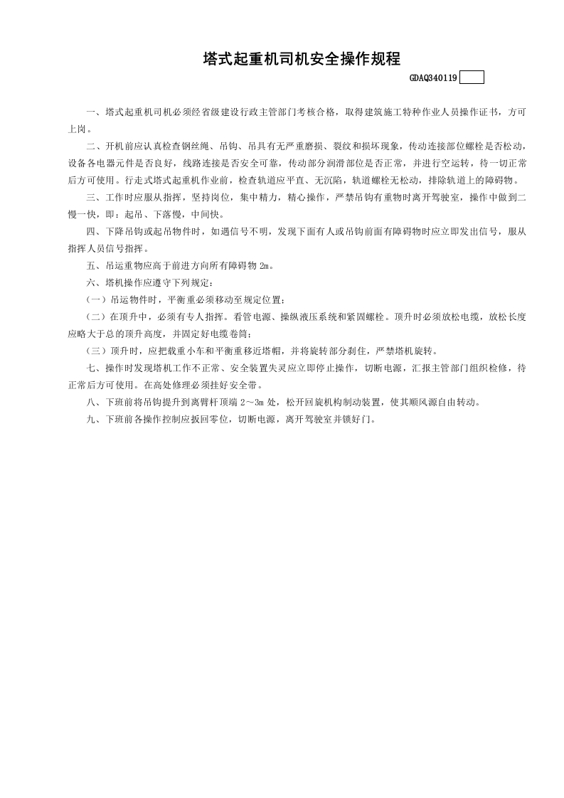 首页专业资料标准化19塔式起重机司机安全操作规程GDAQ340119