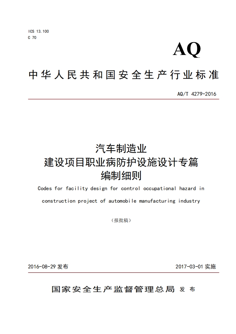 AQT 4279-2016 汽车制造业建设项目职业病防护设施设计专篇编制细则