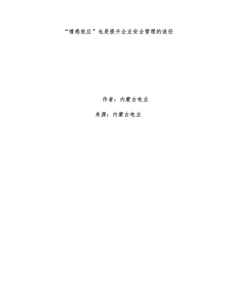“情感效应”也是提升企业安全管理的途径作者:内蒙古电业