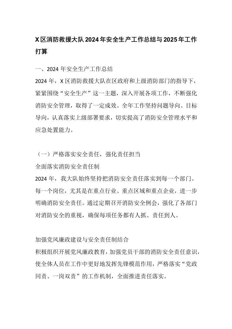 X区消防救援大队2024年安全生产工作总结与2025年工作打算