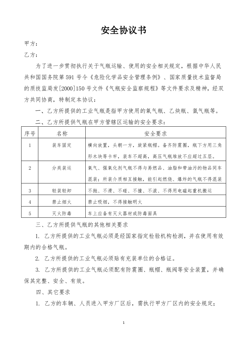 06气瓶供货安全协议书(模板)