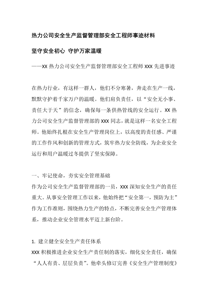 首页安全文档综合热力公司安全生产监督管理部安全工程师事迹材料