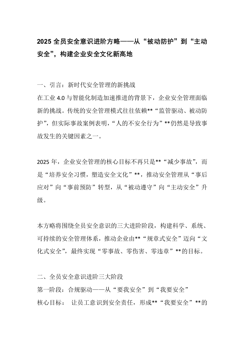 首页安全文档综合2025全员安全意识进阶方略——从“被动防护”到“主动安全”,构建企业安全文化新高地