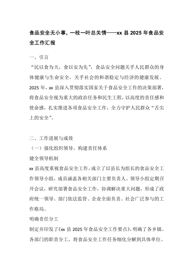 食品安全无小事,一枝一叶总关情——xx县2025年食品安全工作汇报