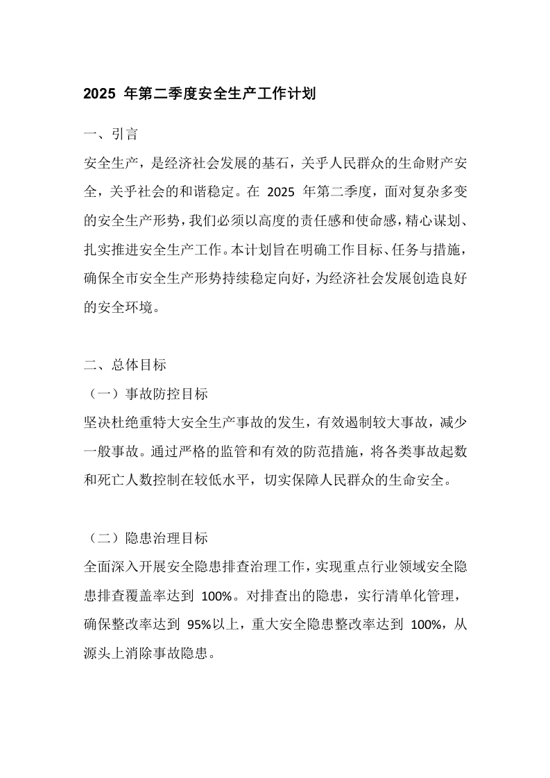 首页安全文档综合2025 年第二季度安全生产工作计划