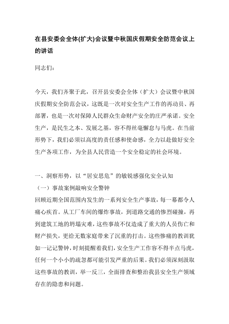 在县安委会全体(扩大)会议暨中秋国庆假期安全防范会议上的讲话