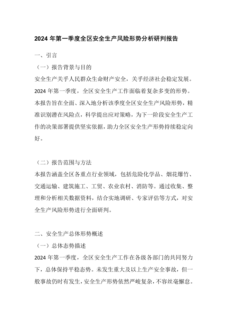2024年第一季度全区安全生产风险形势分析研判报告