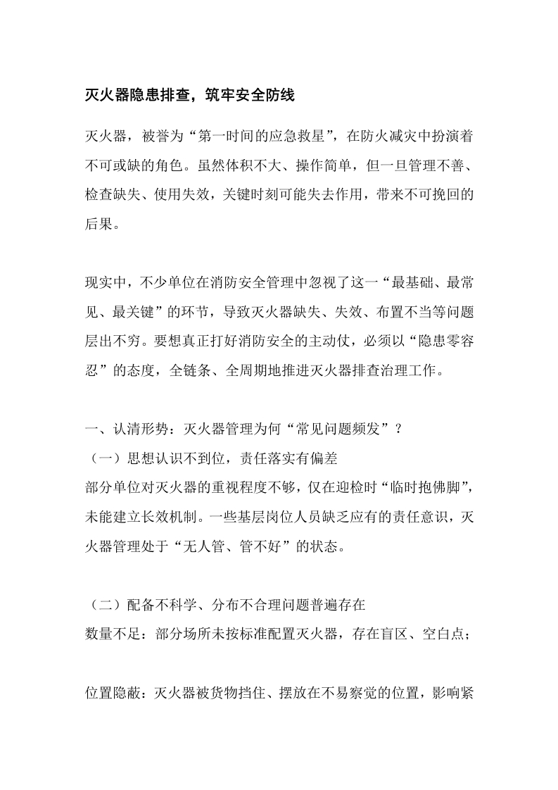 灭火器隐患排查,筑牢安全防线