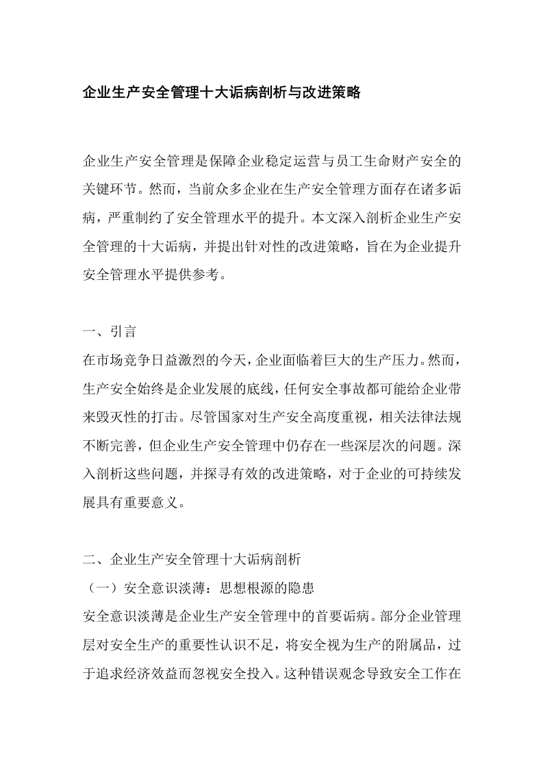 首页安全文档综合企业生产安全管理十大诟病剖析与改进策略