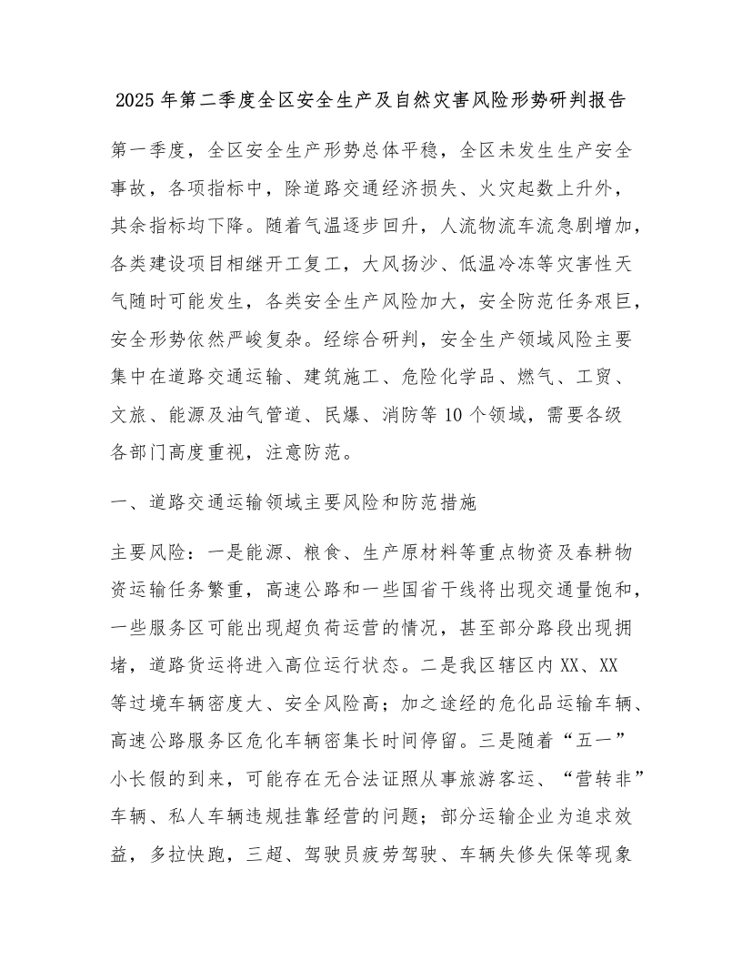 2025年第二季度全区安全生产及自然灾害风险形势研判报告