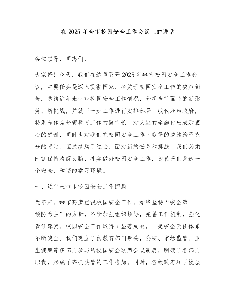 在2025年全市校园安全工作会议上的讲话