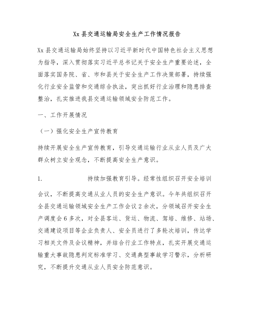 首页安全文档综合县交通运输局安全生产工作情况报告