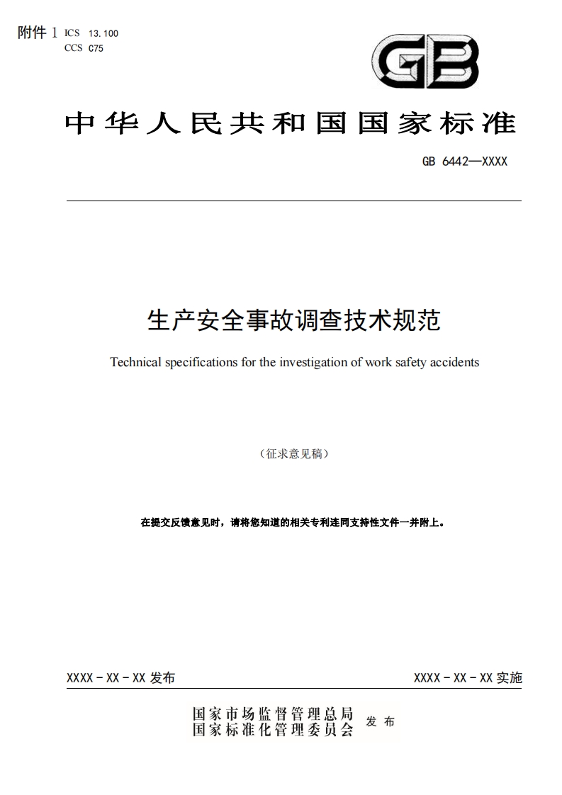 《生产安全事故调查技术规范(征求意见稿)》及编制说明