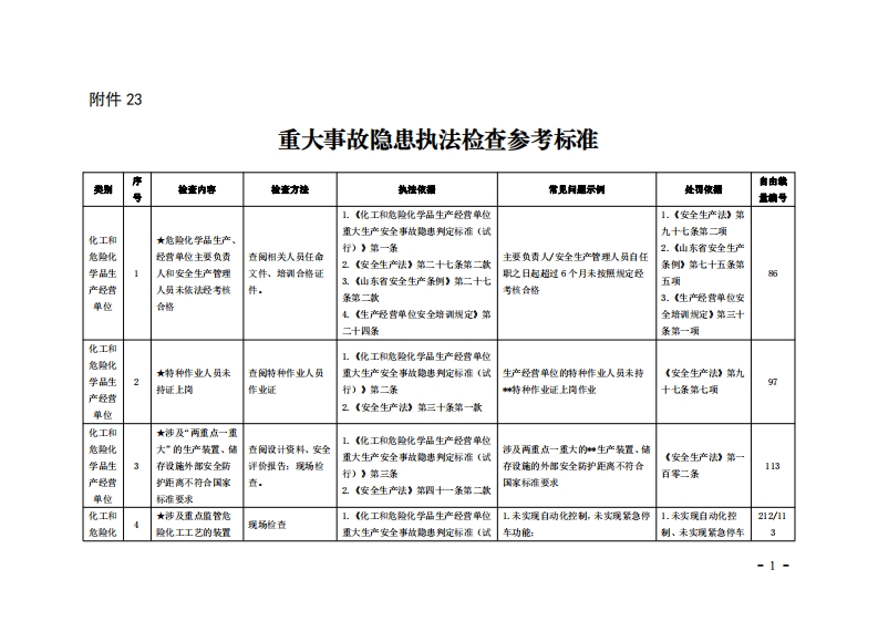 首页安全课件综合课件重大事故隐患执法检查参考标准清单
