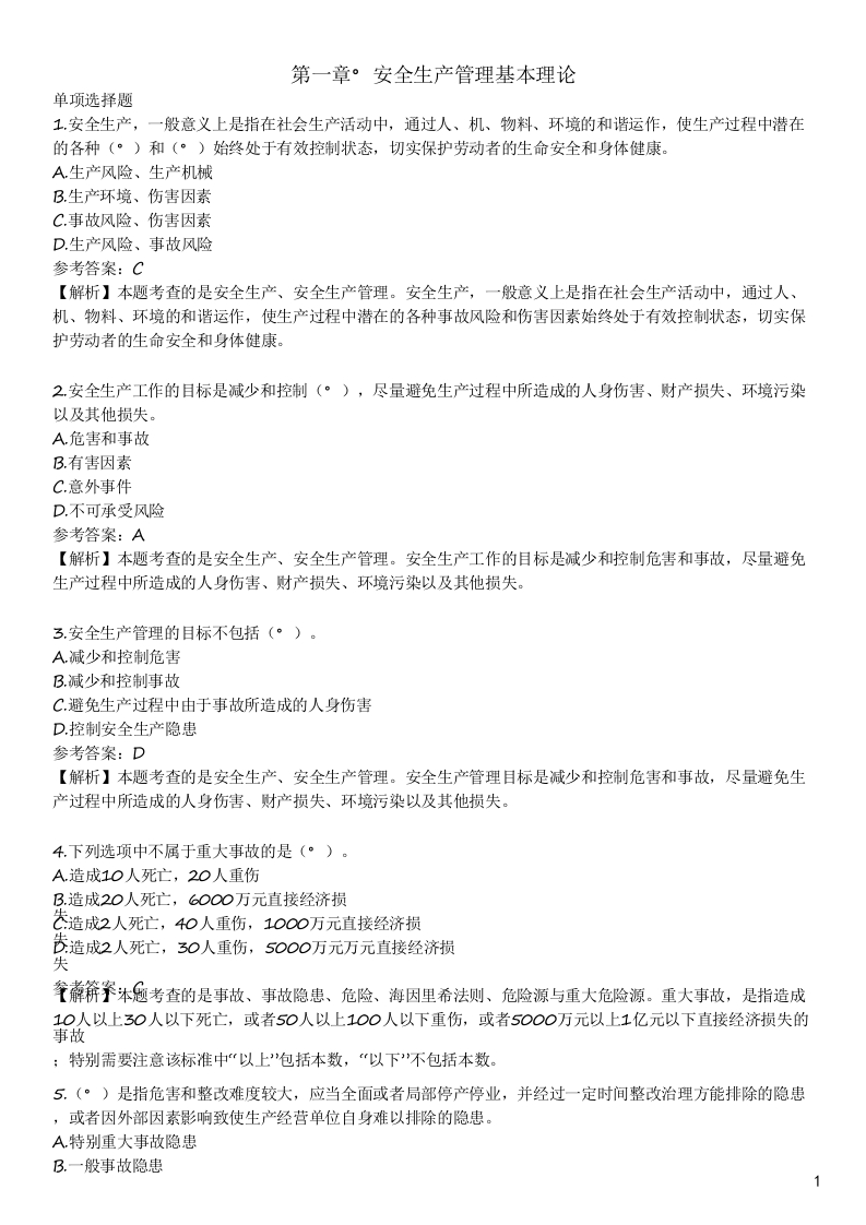 注册安全工程师章节练习第一章 安全生产管理基本理论5
