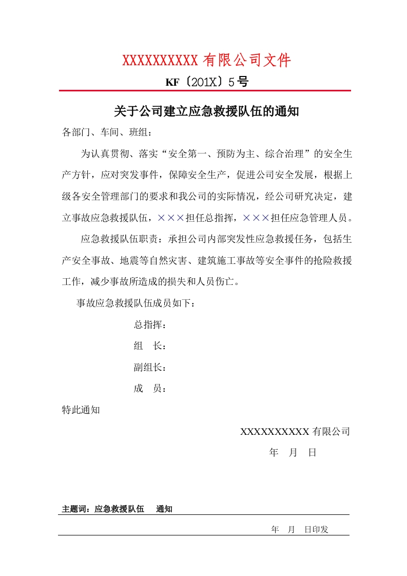 首页应急预案应急预案知识3.关于公司建立应急求援队伍的通知