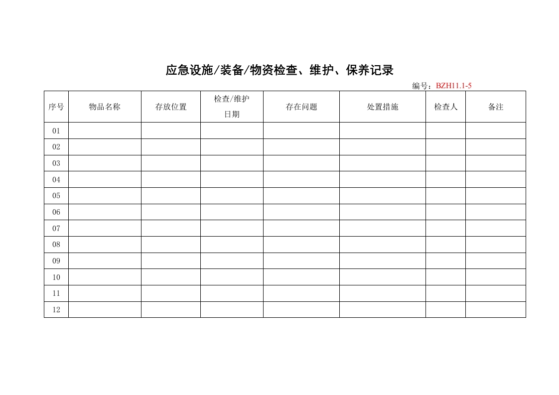 首页应急预案应急预案知识9.应急设施 装备 物资检查、维护、保养记录