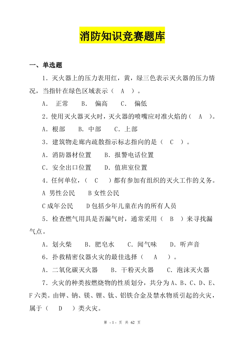 【题库】2025年消防知识竞赛超全版题库(62页)