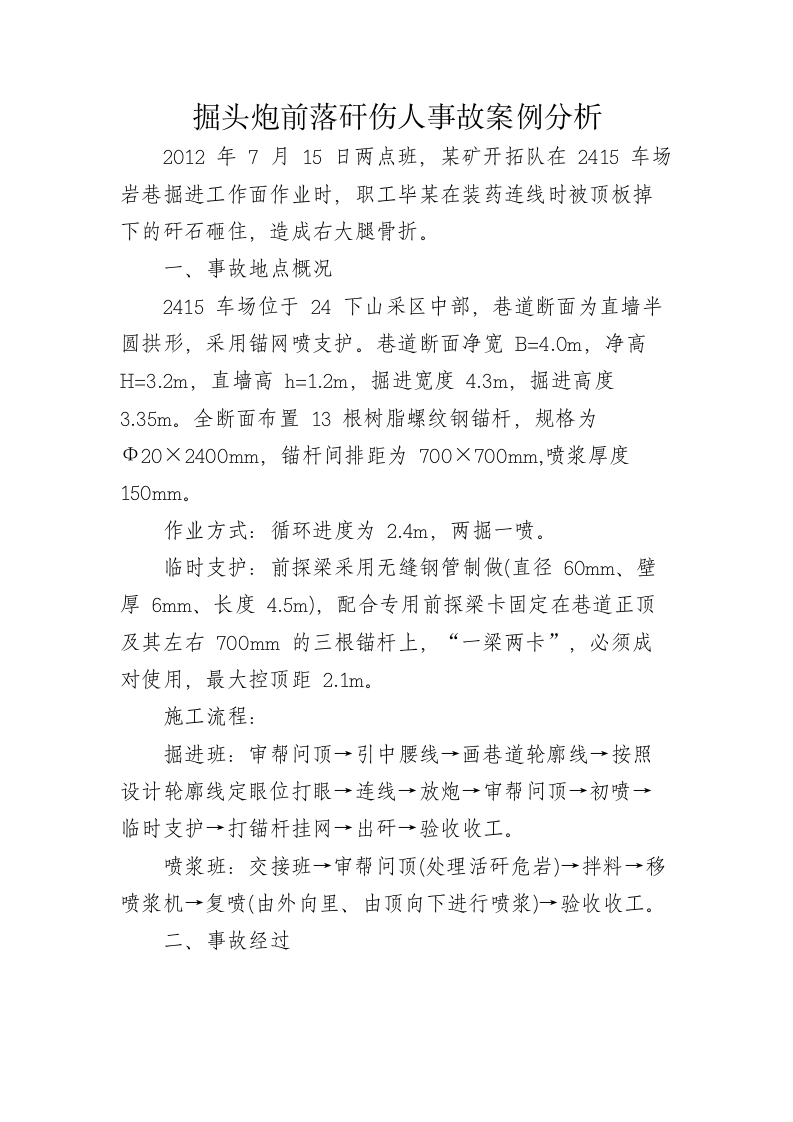 首页事故案例火灾事故掘头炮前落矸伤人事故案例分析