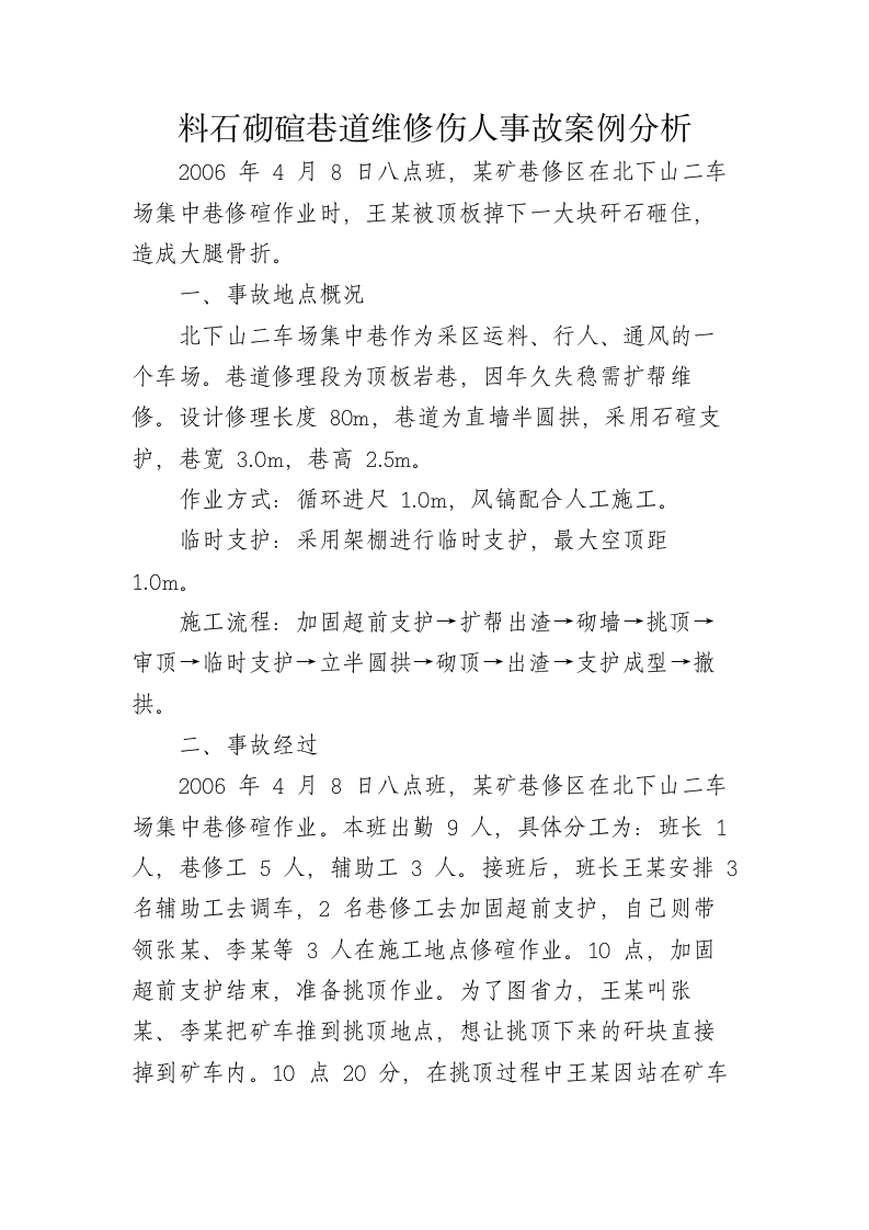 首页事故案例火灾事故料石砌碹巷道维修伤人事故案例分析