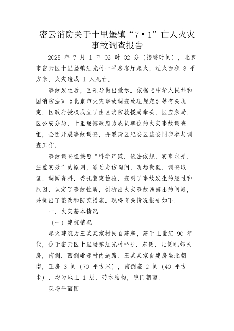 密云消防关于十里堡镇71亡人火灾事故调查报告